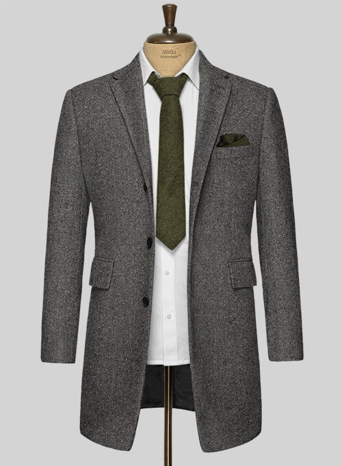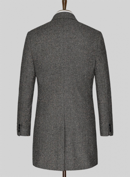 Gray Herringbone Flecks Donegal Tweed Overcoat