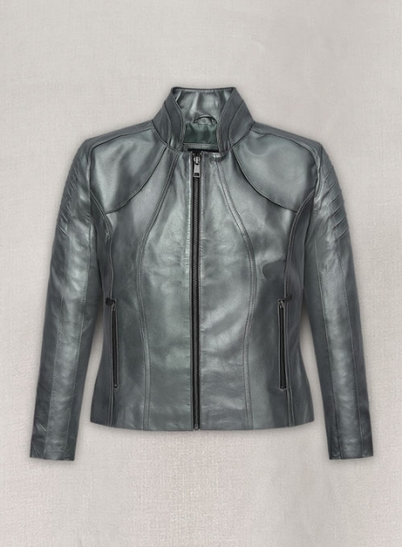 Metallic Lurex Gray Leather Jacket # 265