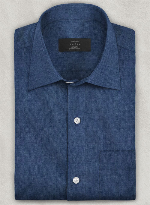 European Nile Blue Linen Shirt - Full Sleeves